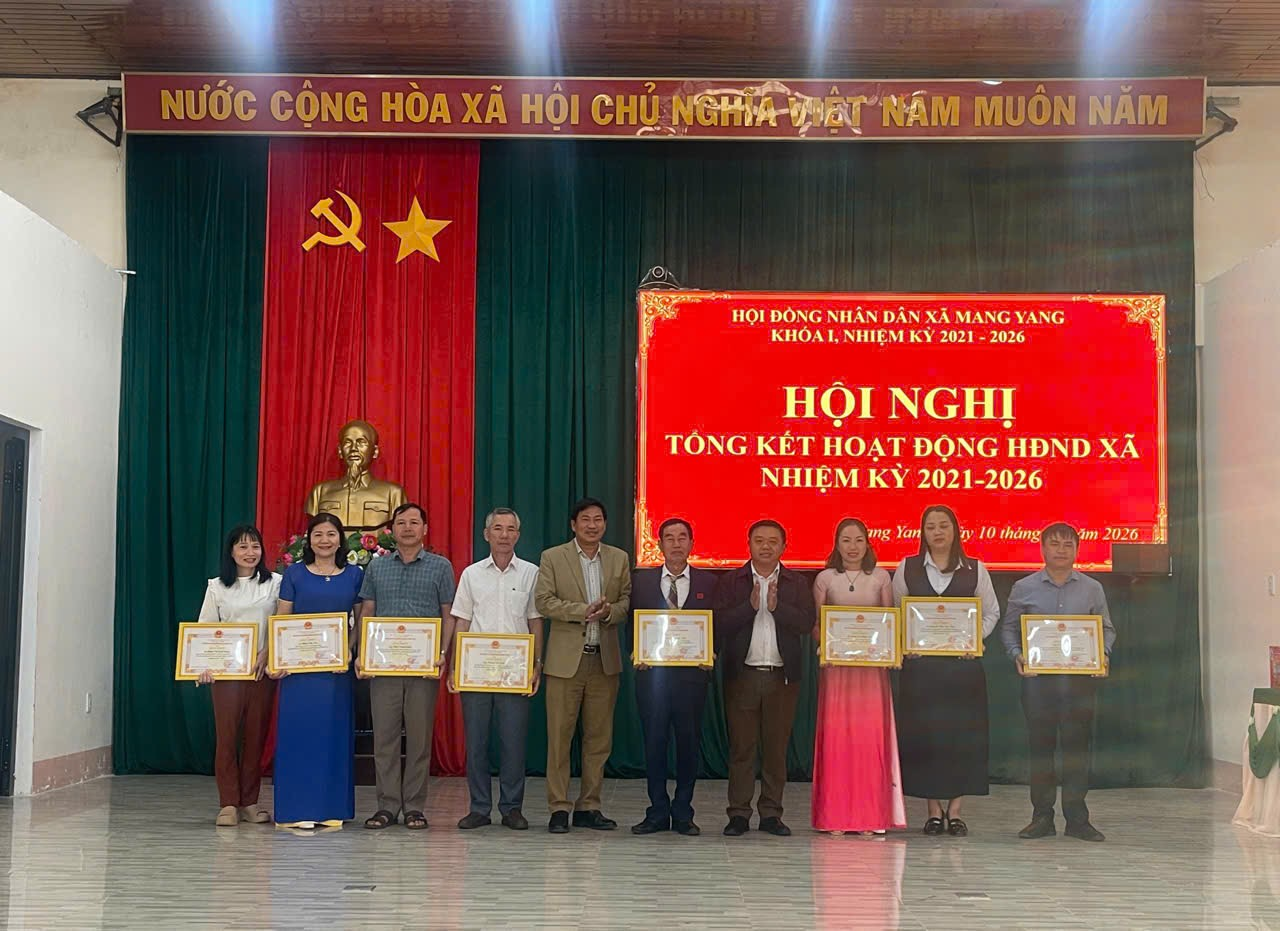 Cùng buổi chiều, HĐND xã Mang Yang tổ chức Hội nghị tổng kết hoạt động HĐND xã nhiệm kỳ 2021–2026. Báo cáo tại hội nghị, trong năm 2025, hoạt động của HĐND xã đạt nhiều kết quả quan trọng. Việc tổ chức và hoạt động của HĐND xã được thực hiện đúng quy định của Luật số 72/2025/QH15 ngày 16/6/2025 về Tổ chức chính quyền địa phương và các văn bản hướng dẫn liên quan.
