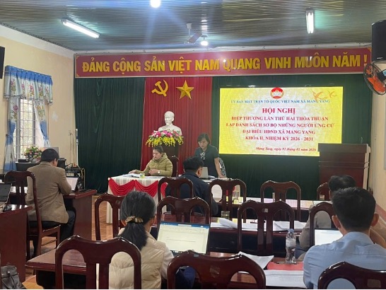 Ngày 2/2/2026, Uỷ ban Mặt trận Tổ quốc Việt Nam xã đã tổ chức Hội nghị hiệp thương lần thứ hai thoả thuận về cơ cấu, thành phần, số lượng người ứng cử Đại biểu HĐND xã, nhiệm kỳ 2026 – 2031. Tham dự hội nghị có đồng chí Lê Trọng- Bí thư Đảng ủy xã, Chủ tịch Hội đồng nhân dân xã; đồng chí Đoàn Như Kiên- Phó bí thư thường trực Đảng ủy xã; đồng chí Võ Lê Xuân Thiện- Phó bí thư, Chủ tịch Uỷ ban nhân dân xã; các đồng chí đại diện Ủy ban bầu cử, Thường trực Hội đồng nhân dân, Ủy ban nhân dân xã; các đồng chí trong Ban Thường trực Ủy ban MTTQ Việt Nam xã, đại diện ban lãnh đạo các tổ chức thành viên của Mặt trận Tổ quốc Việt Nam xã.