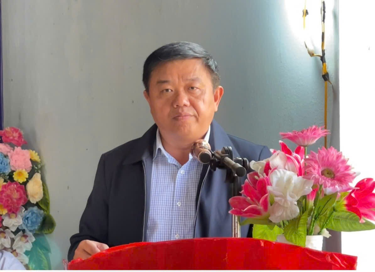 Ông Võ Lê Xuân Thiện - Phó Bí thư Đảng ủy, Chủ tịch Ủy ban nhân dân xã trình bày chương trình hành động của mình trong Hội nghị tiếp xúc cử tri