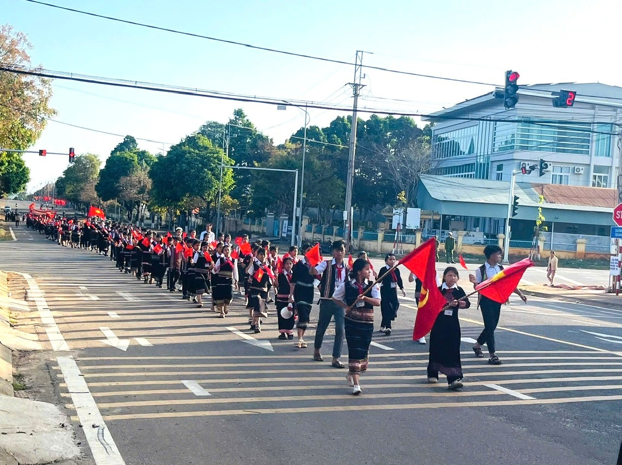 Trường Trung học cơ sở Lê Quý Đôn tổ chức diễu hành vào lúc 7 giờ 30 phút, xuất phát từ trường và di chuyển qua khu vực làng Brêp trước khi quay trở lại điểm xuất phát.