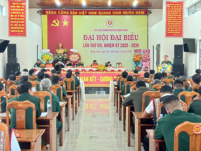 Trong 2 ngày từ ngày 28 đến 29 tháng 10, Hội Cựu chiến binh xã Mang Yang đã long trọng tổ chức Đại hội Đại biểu lần thứ I, nhiệm kỳ 2025 - 2030. Tham dự Đại hội có đồng chí Nguyễn Tiến Lợi, Phó Chủ tịch Hội CCB tỉnh. Về phía lãnh đạo xã Mang Yang có các đồng chí lãnh đạo Đảng ủy, UBND, Ủy ban MTTQ; lãnh đạo các ban, phòng ngành, đoàn thể xã; các đồng chí nguyên là Chủ tịch Hội Cựu Chiến binh qua các thời kỳ và 78 đại biểu chính thức đại diện trên 700 hội viên CCB trong toàn xã.