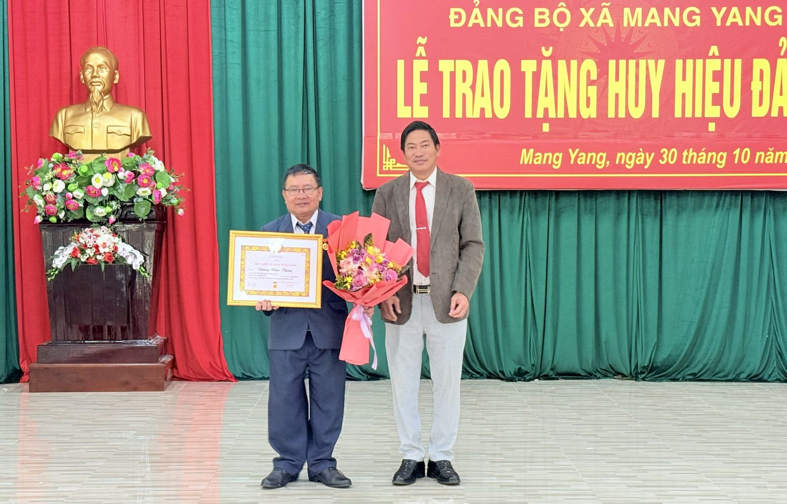 Lãnh đạo xã Mang Yang trao tặng Huy hiệu Đảng chi các đảng viên 50 năm và 45 tuổi Đảng