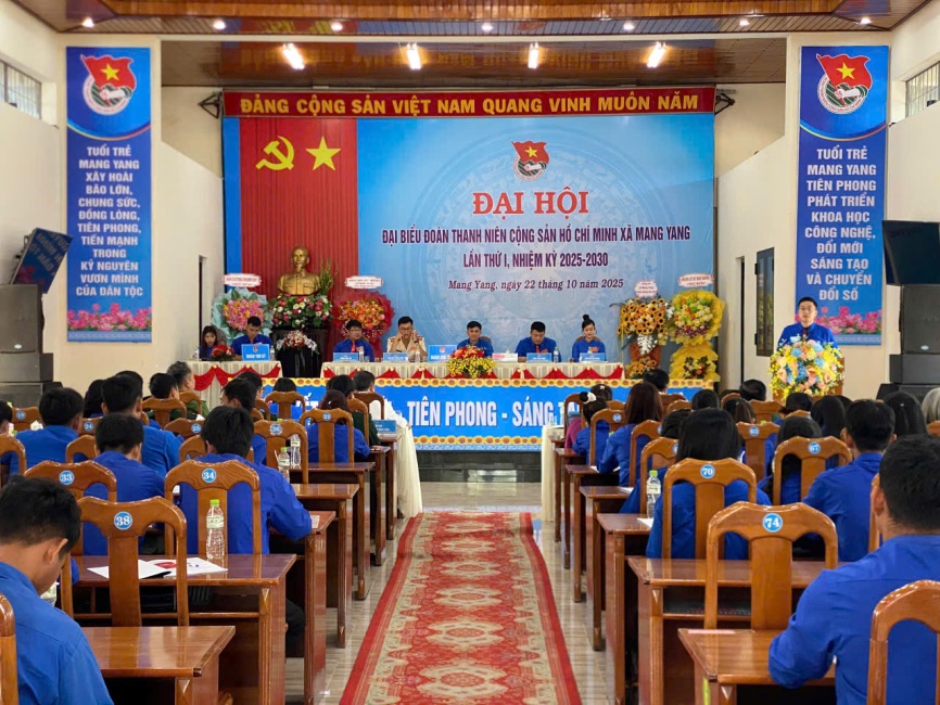 Sáng ngày 22/10/2025, Đoàn Thanh niên Cộng sản Hồ Chí Minh xã Mang Yang xã tổ chức Đại hội đại biểu lần thứ I, nhiệm kỳ 2025 – 2030. Đây là sự kiện chính trị quan trọng, đánh dấu bước phát triển mới của tuổi trẻ địa phương trong công tác Đoàn và phong trào thanh niên.