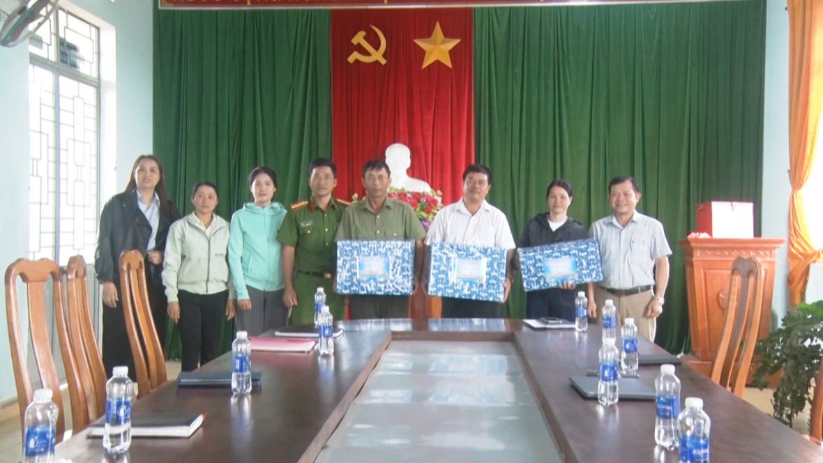 Đồng chí Đoàn Như Kiên – Phó Bí thư Thường trực Đảng ủy xã Mang Yang tặng quà cho chi bộ Thôn 1, Thôn 3 và làng Bông Hiot