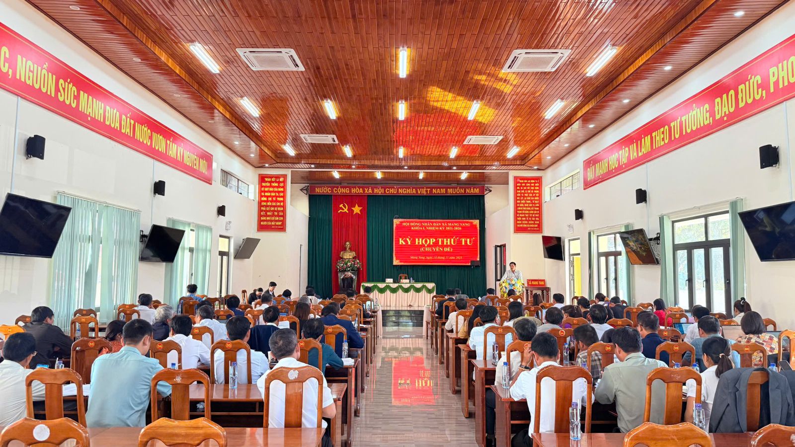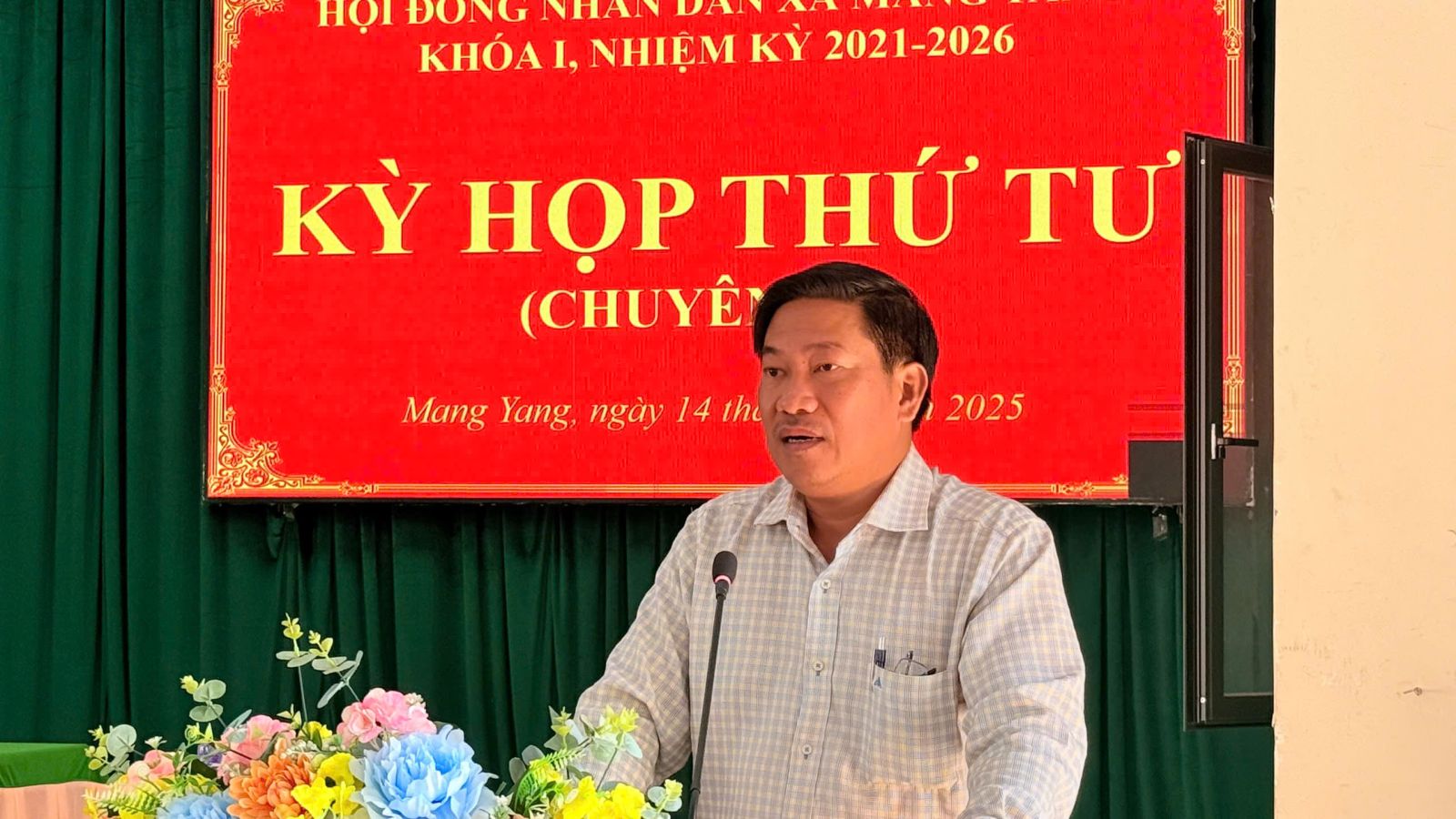 Chiều ngày 14/11/2025, Hội đồng nhân dân xã Mang Yang tổ chức Kỳ họp thứ Tư (chuyên đề) khóa I, nhiệm kỳ 2021–2026 tại Hội trường UBND xã. Đồng chí Lê Trọng, Chủ tịch HĐND xã, chủ trì kỳ họp. Tham dự có đồng chí Đoàn Như Kiên, Phó Bí thư Thường trực Đảng ủy xã; lãnh đạo UBND xã; Thường trực HĐND; các đại biểu HĐND xã khóa I cùng đại diện các ban ngành, đoàn thể và các thôn, làng trên địa bàn.