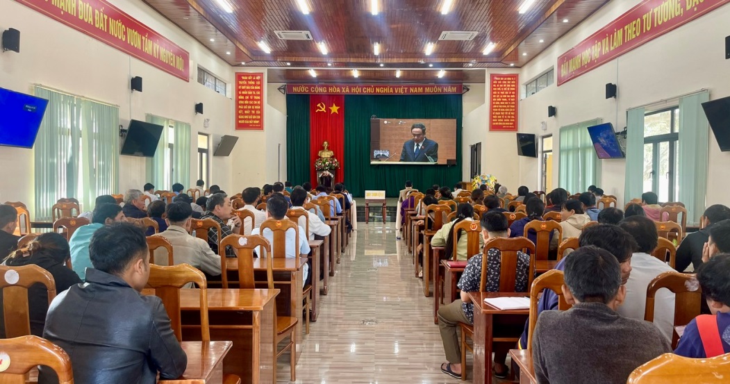 Tham dự hội nghị tại điểm cầu xã Mang Yang có các đồng chí lãnh đạo Đảng ủy, UBND, UBMTTQ VN xã; đại diện lãnh đạo các ban, ngành liên quan và các thôn làng, tổ dân phố.