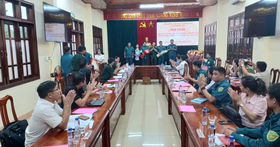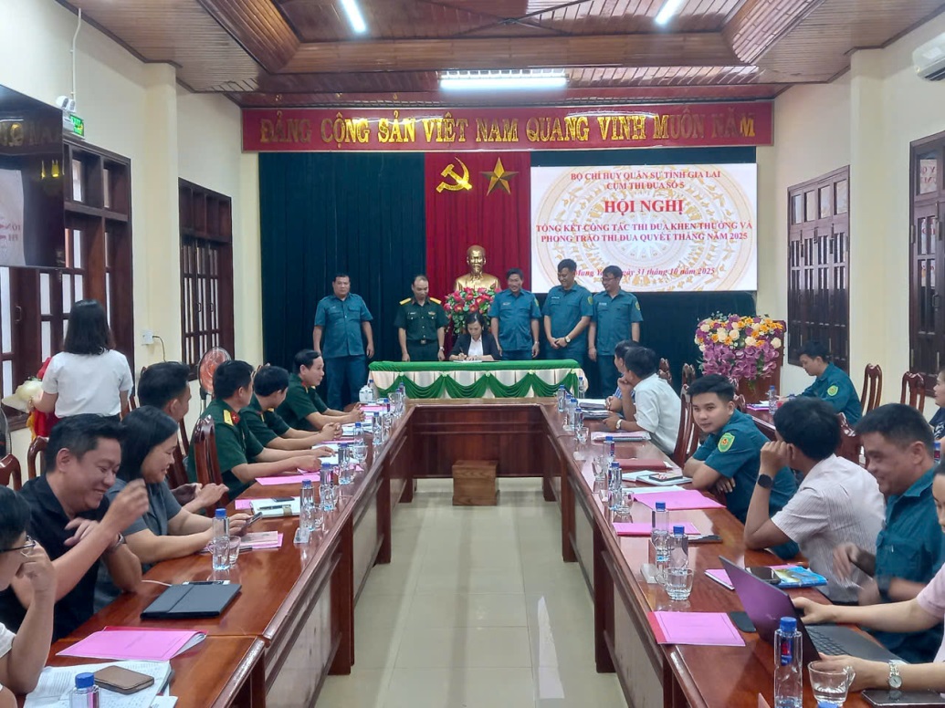 Trong năm 2025, các đơn vị trong Cụm thi đua số 5 đã phát huy tinh thần đoàn kết, chủ động, sáng tạo, thực hiện hiệu quả các phong trào thi đua gắn với nhiệm vụ xây dựng cơ quan, đơn vị vững mạnh toàn diện, “mẫu mực, tiêu biểu”. Các đơn vị đã quán triệt nghiêm túc các nghị quyết, chỉ thị của Đảng; đẩy mạnh học tập và làm theo tư tưởng, đạo đức, phong cách Hồ Chí Minh; thực hiện tốt Cuộc vận động “Phát huy truyền thống, cống hiến tài năng, xứng danh Bộ đội Cụ Hồ” và Nghị quyết 847 của Quân ủy Trung ương. Công tác giáo dục chính trị, tư tưởng được duy trì thường xuyên, góp phần củng cố niềm tin, nâng cao bản lĩnh chính trị cho cán bộ, đảng viên và lực lượng dân quân. Đặc biệt, trong năm Cụm đã kết nạp 21 đảng viên mới, tiêu biểu có Ban CHQS xã Mang Yang thực hiện tốt công tác giáo dục chính trị và kiểm tra sẵn sàng chiến đấu định kỳ. Công tác huấn luyện, tuyển chọn và gọi công dân nhập ngũ năm 2026 đạt 100% chỉ tiêu; lực lượng dân quân được xây dựng đủ số lượng, chất lượng, bảo đảm an toàn tuyệt đối trong huấn luyện và diễn tập. Các đơn vị cũng thực hiện tốt chính sách hậu phương quân đội, thăm hỏi, tặng 27 suất quà trị giá trên 45 triệu đồng cho đối tượng chính sách và dân quân có hoàn cảnh khó khăn; đồng thời phối hợp cùng các ban, ngành, đoàn thể tổ chức dọn vệ sinh, chỉnh trang đường làng, góp phần xây dựng nông thôn mới. Công tác hậu cần – kỹ thuật được triển khai nghiêm túc, thực hiện tốt Cuộc vận động “Quản lý, khai thác vũ khí, trang bị kỹ thuật tốt, bền, an toàn, tiết kiệm và an toàn giao thông”, bảo đảm tuyệt đối an toàn người và trang bị.