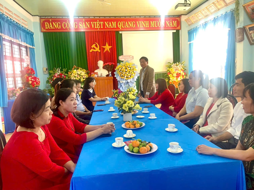 Thay mặt Đảng ủy, HĐND, UBND, Ủy ban MTTQ Việt Nam xã Mang Yang, đồng chí Lê Trọng gửi lời chúc mừng tốt đẹp nhất đến tập thể cán bộ, giáo viên nhà trường nhân dịp Ngày Nhà giáo Việt Nam 20/11; biểu dương những nỗ lực của đội ngũ thầy cô trong việc duy trì chất lượng giáo dục, chăm lo cho học sinh; đồng thời khẳng định cấp ủy, chính quyền địa phương luôn quan tâm, đồng hành cùng nhà trường trong sự nghiệp nâng cao dân trí, đào tạo nhân lực, bồi dưỡng nhân tài.