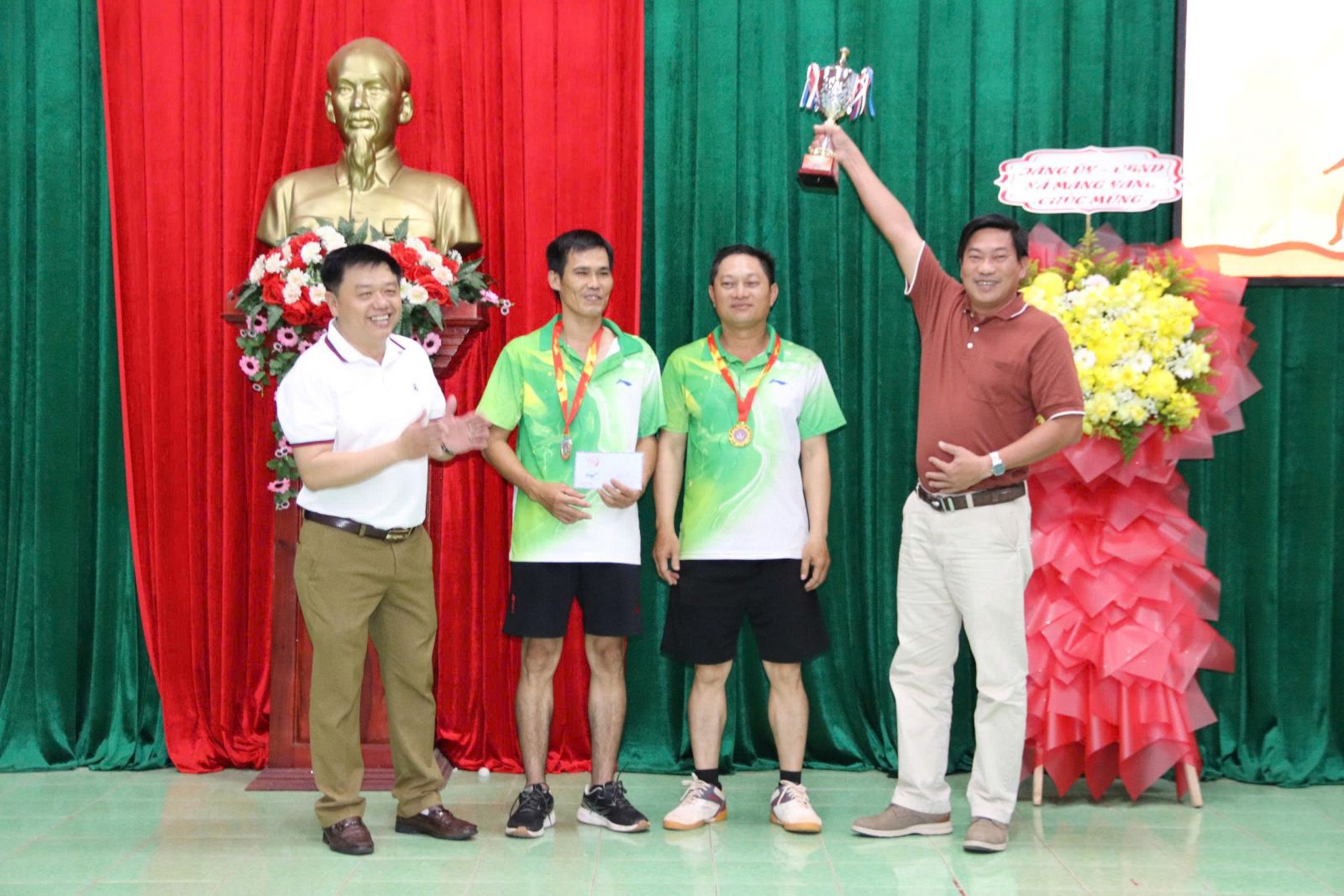 Đ/c Lê Trọng - Bí thư Đảng ủy xã và Đ/c Võ Lê Xuân Thiện - CT.UBND xã trao giải thưởng cho đội giành giải nhất
