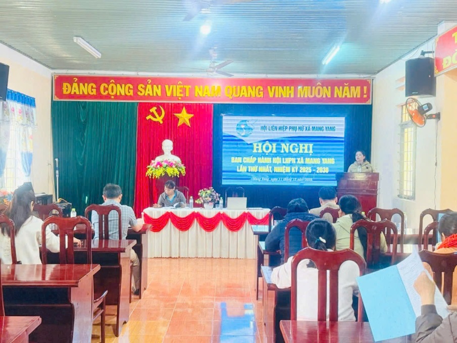 Ngày 11 tháng 12, Hội Liên hiệp phụ nữ xã Mang Yang đã tổ chức Hội nghị Ban Chấp hành lần thứ nhất, nhiệm kỳ 2025 – 2030 nhằm đánh giá kết quả công tác Hội năm 2025 và triển khai nhiệm vụ trọng tâm năm 2026.
