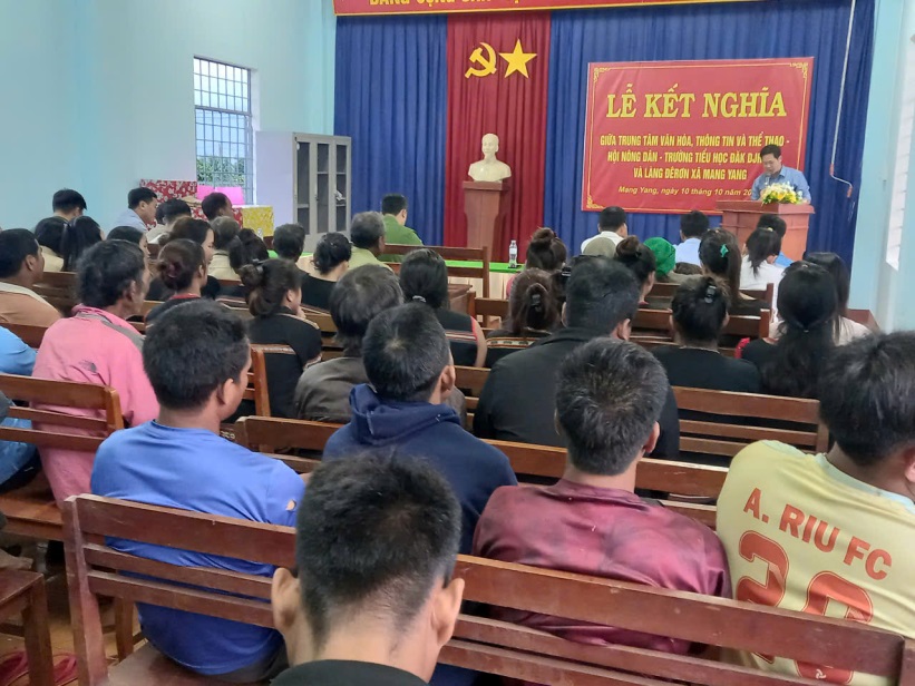 Chiều ngày 10/10, Trung tâm Văn hóa – Thông tin và Thể thao, Hội Nông dân và Trường Tiểu học Đăk Djrăng đã tổ chức Lễ kết nghĩa với làng Đêrơn, xã Mang Yang. Tham dự Lễ kết nghĩa có lãnh đạo các đơn vị, đại diện hệ thống chính trị của làng cùng đông đảo bà con nhân dân.
