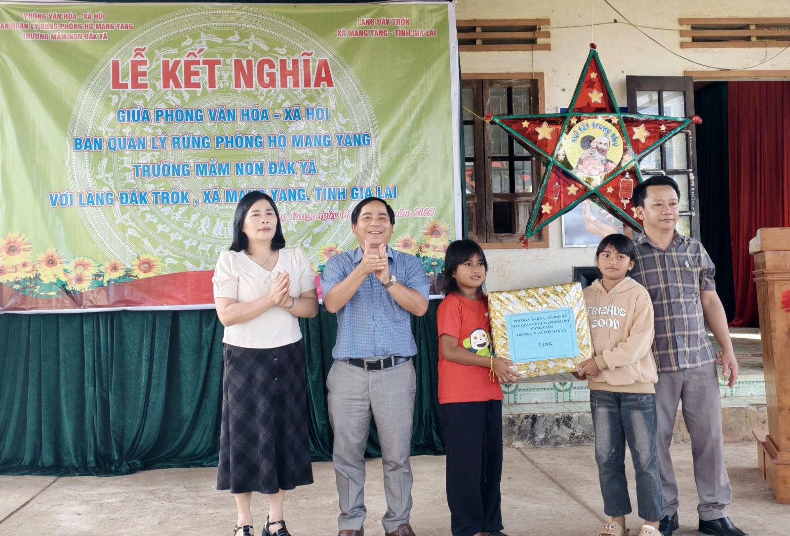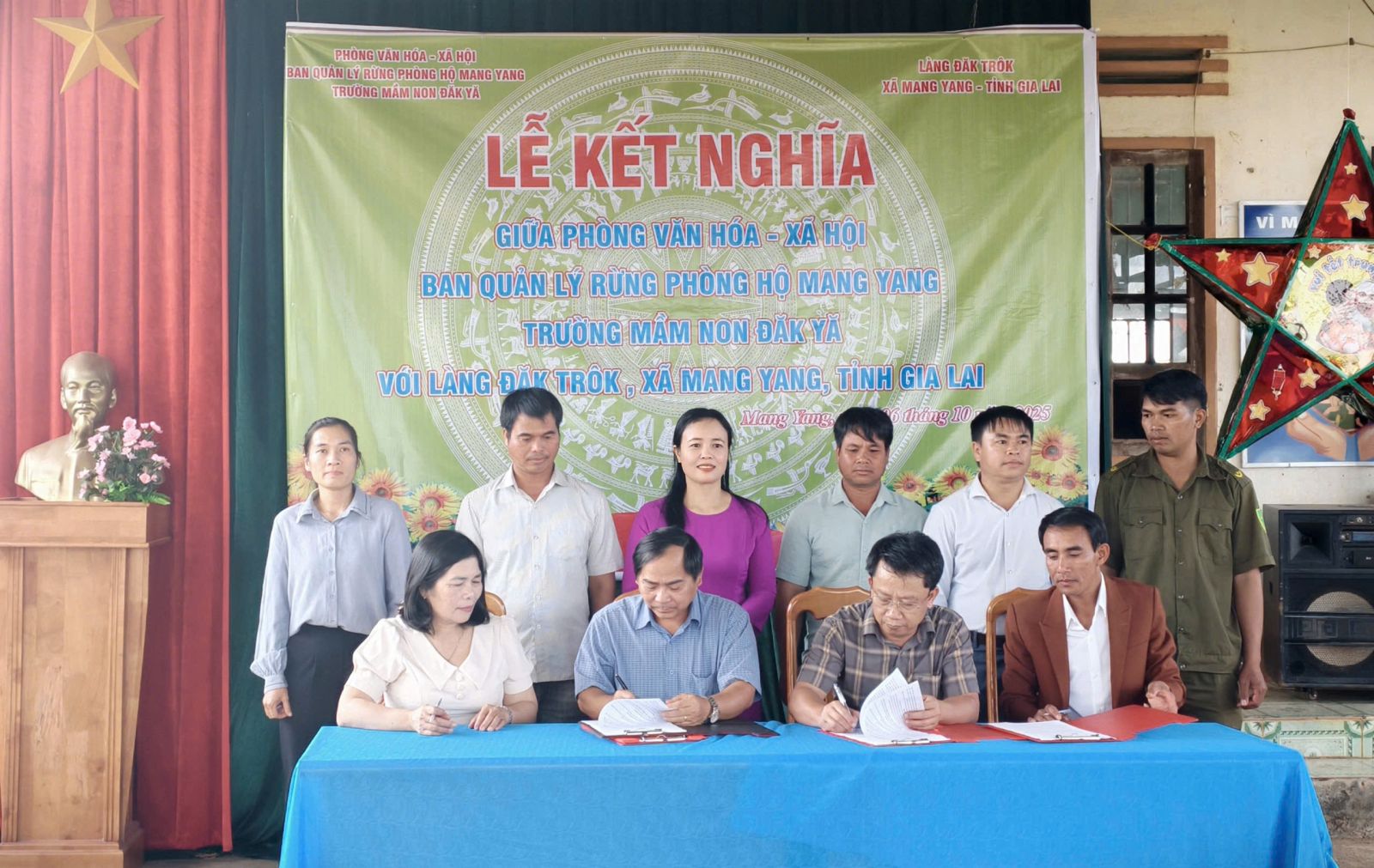 Thực hiện Quyết định số 143-QĐ/ĐU, ngày 24/9/2025 của Đảng ủy xã Mang Yang về phân công các cơ quan, đơn vị kết nghĩa với thôn làng đồng bào dân tộc thiểu số trên địa bàn xã Mang Yang; Kế hoạch số 14-KH/ĐU, ngày 24/9/2025 của Ban Thường vụ Đảng ủy xã Mang Yang thực hiện Chỉ thị số 03-CT/TU, ngày 07/8/2025 của Ban Thường vụ Tỉnh ủy về tăng cường hoạt động kết nghĩa giữa các địa phương, đơn vị với các thôn, làng vùng đồng bào dân tộc thiểu số trên địa bàn tỉnh; Kế hoạch phối hợp số 01/KH-PVHXH-BQLRPH-TMN của Phòng Văn hóa - Xã hội xã, BQL rừng phòng hộ Mang Yang và Trường Mầm Non Đăk Yă tổ chức Lễ kết nghĩa với làng Đăk Trôk, xã Mang Yang; Chiều ngày 06/10/2025, tại Nhà sinh hoạt làng Đăk Trôk, xã Mang Yang đã diễn ra lễ kết nghĩa giữa Phòng Văn hóa - Xã hội xã, BQL rừng phòng hộ Mang Yang và Trường mầm non Đăk Yă với làng Đăk Trôk, xã Mang Yang, tỉnh Gia Lai.