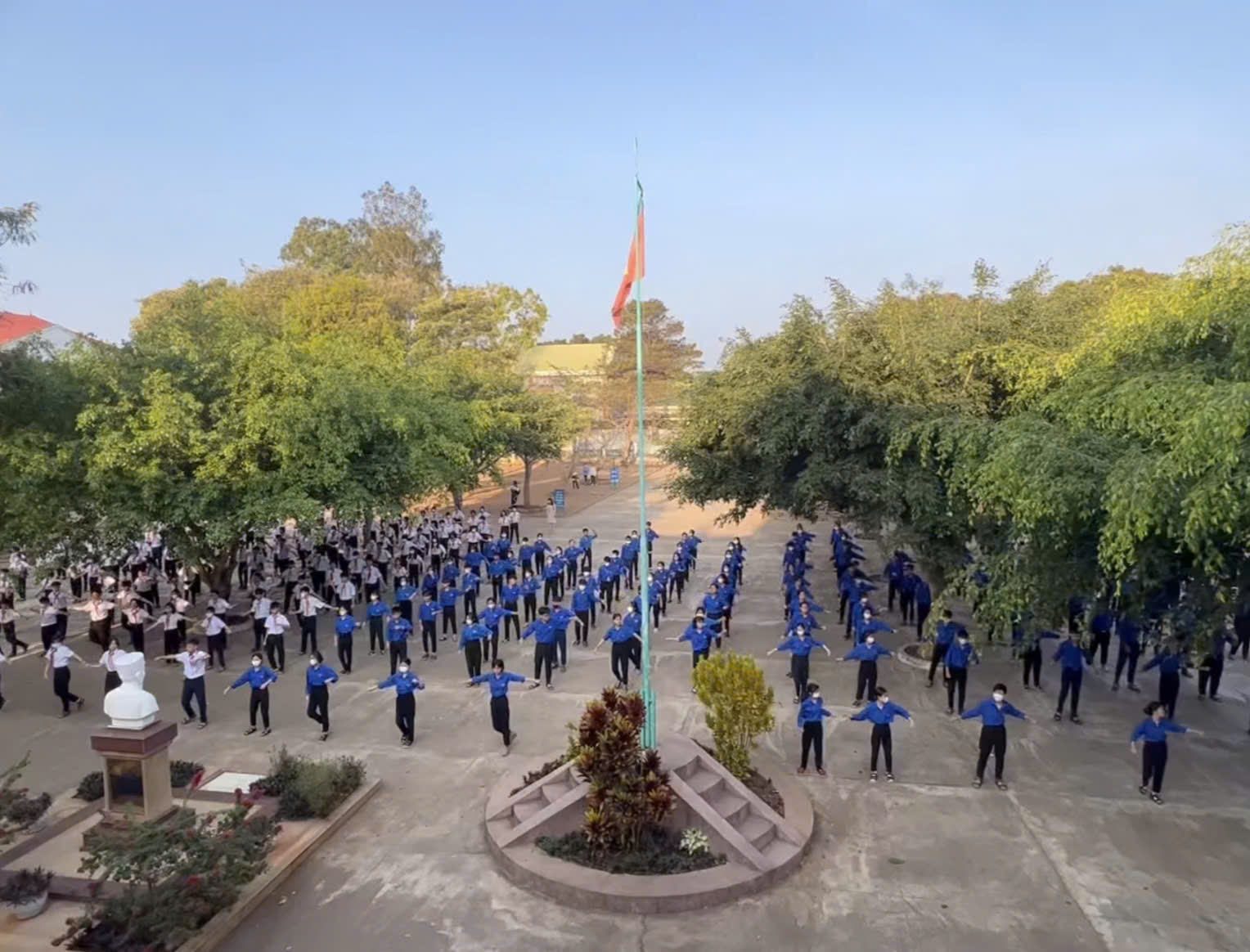 Các em học sinh trường THCS Chu Văn An tập thể dục giữa giờ